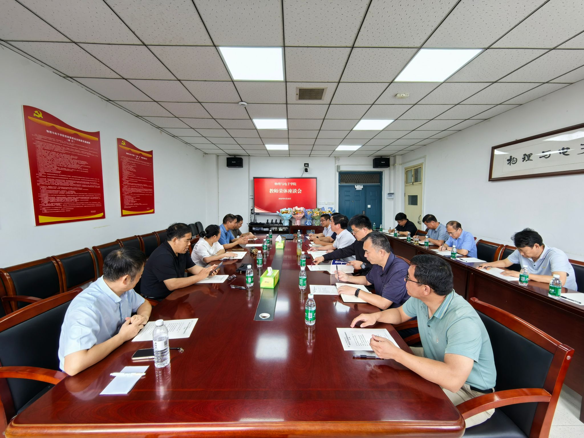 在教师节之际,物理与电子学院举办教师荣休座谈会,学院荣休教师、领导班子成员、系室中心主任、教工支部书记等齐聚一堂,围绕学院发展历程回顾、退休教师贡献、创新人才培养、学科专业建设及退休教师关怀等主题展开深入交流。
