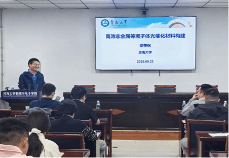 9月22日,暨南大学纳米光子学研究院娄在祝教授应邀到我院交流访问,并在A313报告厅带来题为“高效非金属等离激元光催化材料构建”的专题报告。