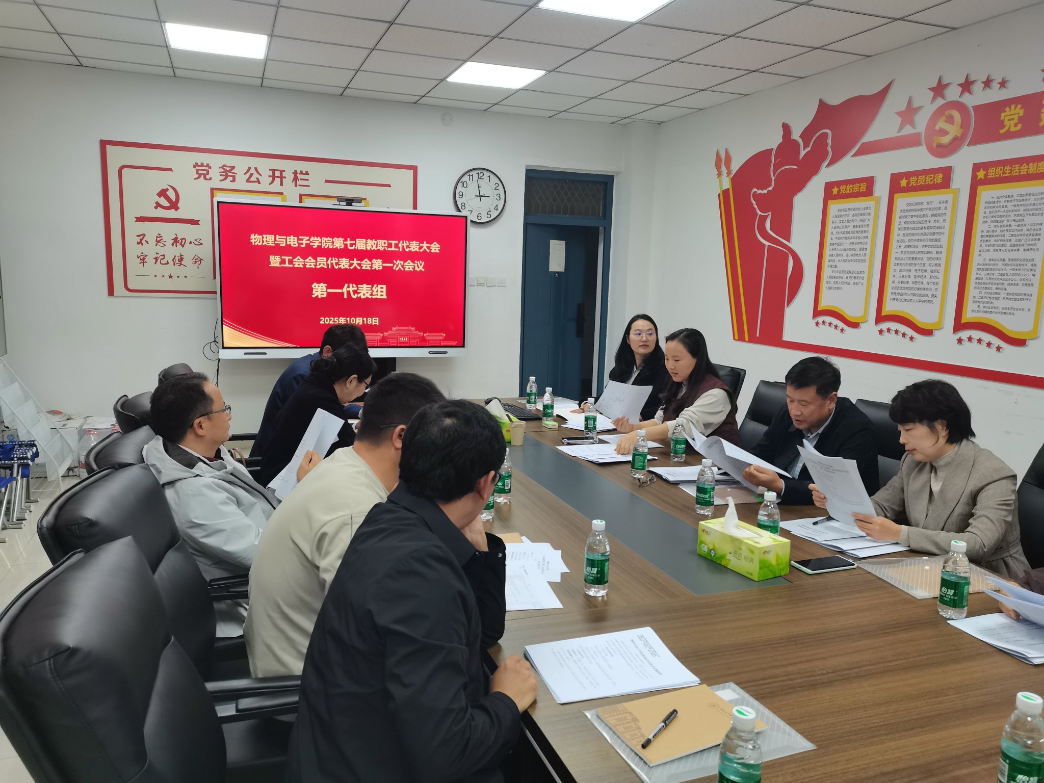 大会选举产生了七届“双代会”委员会委员,表决通过了三个专门工作组名单、《学院工会报告》《工会工作报告》《物理与电子学院职称评审推荐实施细则》。