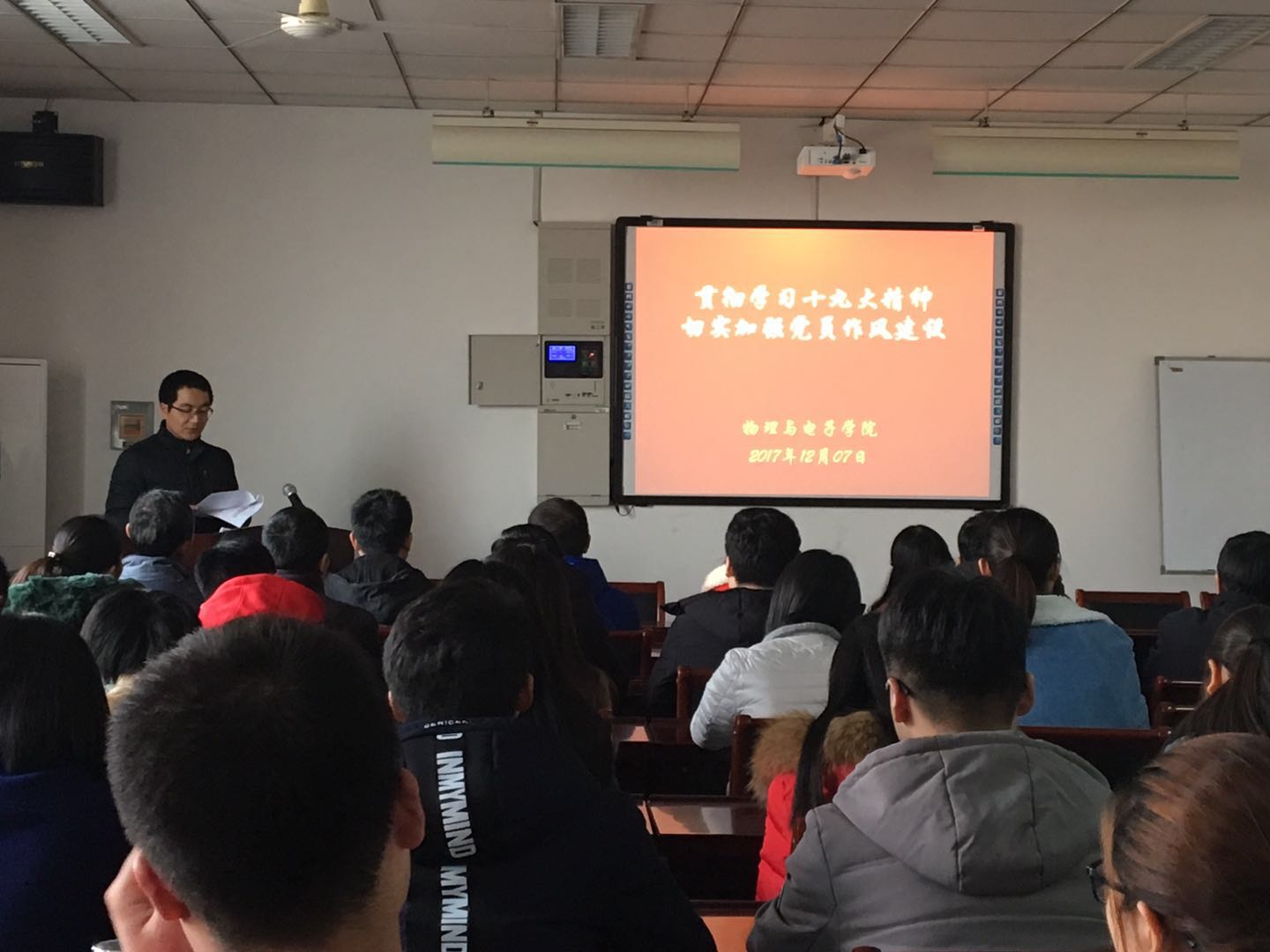 为深入学习和贯彻党的十九大精神,引导学院师生认真研读党的十九大报告,准确把握十九大精髓,以良好的工作作风,助推学校、学院事业不断发展。12月7日下午,院党委召开以“学习贯彻党的十九大精神 切实改进工作作风”为主题的报告会,学院全体教师党员及部分学生党员代表参加了报告会。