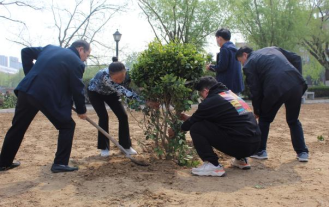 植树现场,秩序井然,气氛热烈,随处都能看到忙碌的身影。参加植树的师生志愿者个个干劲十足,二至三人组成一组,有的握锨挖坑,有的搬运树苗,有的平整土地,有的铺设草坪,大家齐心协力、配合默契,不怕脏不怕累,现场一派热火朝天的忙碌景象。在两个小时的努力后,新栽的苗木和新铺的草坪绿意盎然,焕发着生机活力,为校园增添了一抹靓丽的风景。有志愿者现场感言,“能参加这次植树活动,我觉得非常有意义,不仅能用行动为校园增加了一抹新绿,也让我们感受到了劳动的快乐,收获满满。”
