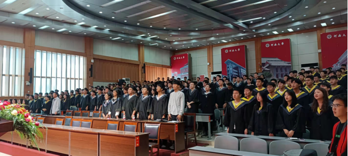 “嵩岳苍苍,河水泱泱……”,在悠扬浑厚的校歌声中,物理与电子学院2023届本科生毕业典礼及学位授予仪式落下帷幕。