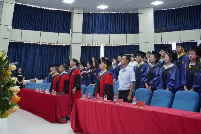 典礼在庄严的国歌声中拉开帷幕。学院副院长李国强宣读《物理与电子学院2023届毕业生学位授予决定》。