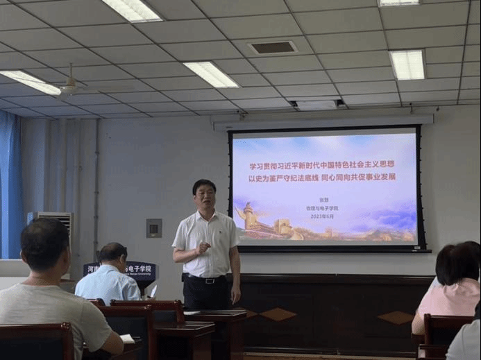 6月29日下午,为进一步深入开展学习贯彻习近平新时代中国特色社会主义思想主题教育,学院党委书记张慧在学院A313会议室为学院领导班子成员、系室(中心)主任、支部书记作《学习贯彻习近平新时代中国特色社会主义思想 以史为鉴严守纪法底线 同心同向共促事业发展》专题报告。