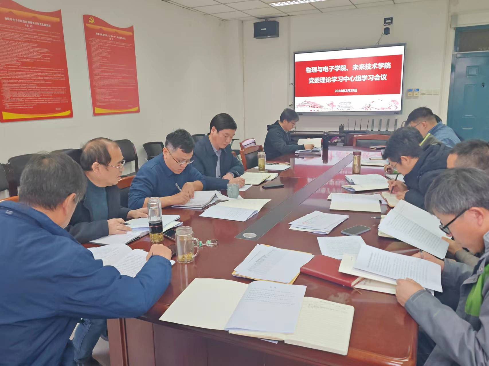 为深入学习贯彻习近平总书记在中共中央政治局第十一次集体学习重要讲话精神、楼阳生书记在全省学习贯彻习近平新时代中国特色社会主义思想主题教育总结会议上的讲话精神和传达2024年学校工作会议重要部署。2月29日,物理与电子学院、未来技术学院(量子信息)在物理楼A座311会议室联合召开党委理论学习中心组学习会议。两个学院党委委员、党政领导班子成员参加会议。会议由物理与电子学院、未来技术学院(量子信息)党委书记张慧主持。
