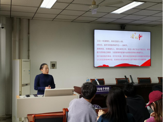 在清明节来临之际,为缅怀革命先烈,继承发扬老一辈革命志士的优良革命传统,激励同学们奋发学习、砥砺前行,物理与电子学院本科生通信专业党支部在支部书记张婷老师的主持下,开展了一场以“缅怀先烈,致敬英雄,砥砺前行”为主题的党日活动,党员和入党积极分子齐聚一堂,共同缅怀革命先烈,传承红色基因,砥砺前行。