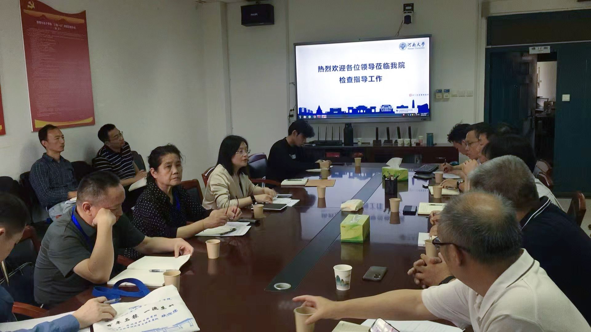 为进一步规范本科教学秩序,深化“学生中心”“两性一度”“课程思政”教学理念,并扎实推进本科教育教学审核评估工作,2024年5月16日,河南大学教务处副处长张琨一行6人莅临学院进行期中教学检查并部署推进本科教学审核工作。学院班子成员张慧、李国强、刘寒冰、魏高明、李新营、刘名果,以及院本科教学督导组、各系主任、教务办主任参加会议。