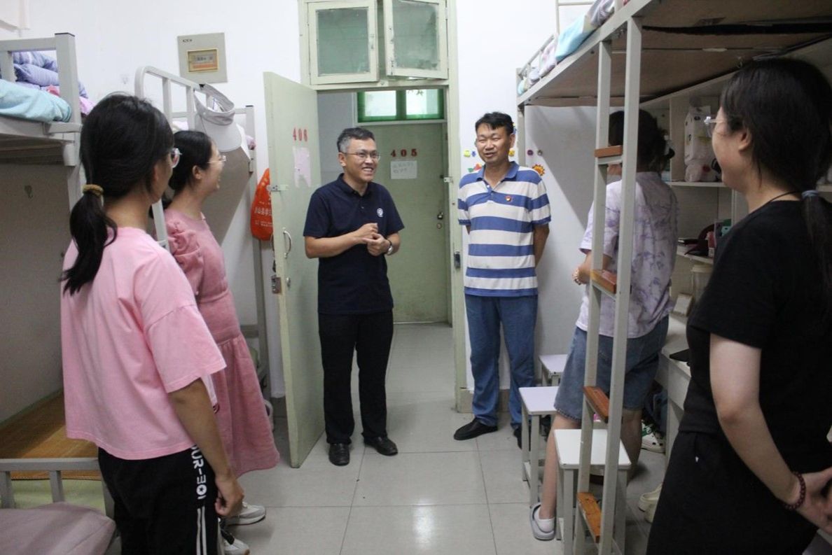 为深入了解我院新生的生活情况,帮助新生尽快适应大学生活,2024年9月5日下午,学院党委书记张慧、执行院长李国强、党委副书记刘寒冰,副院长李新营和副院长魏高明,辅导员李瑞光、刘华云一行前往华源、南苑学生公寓走访慰问新生。