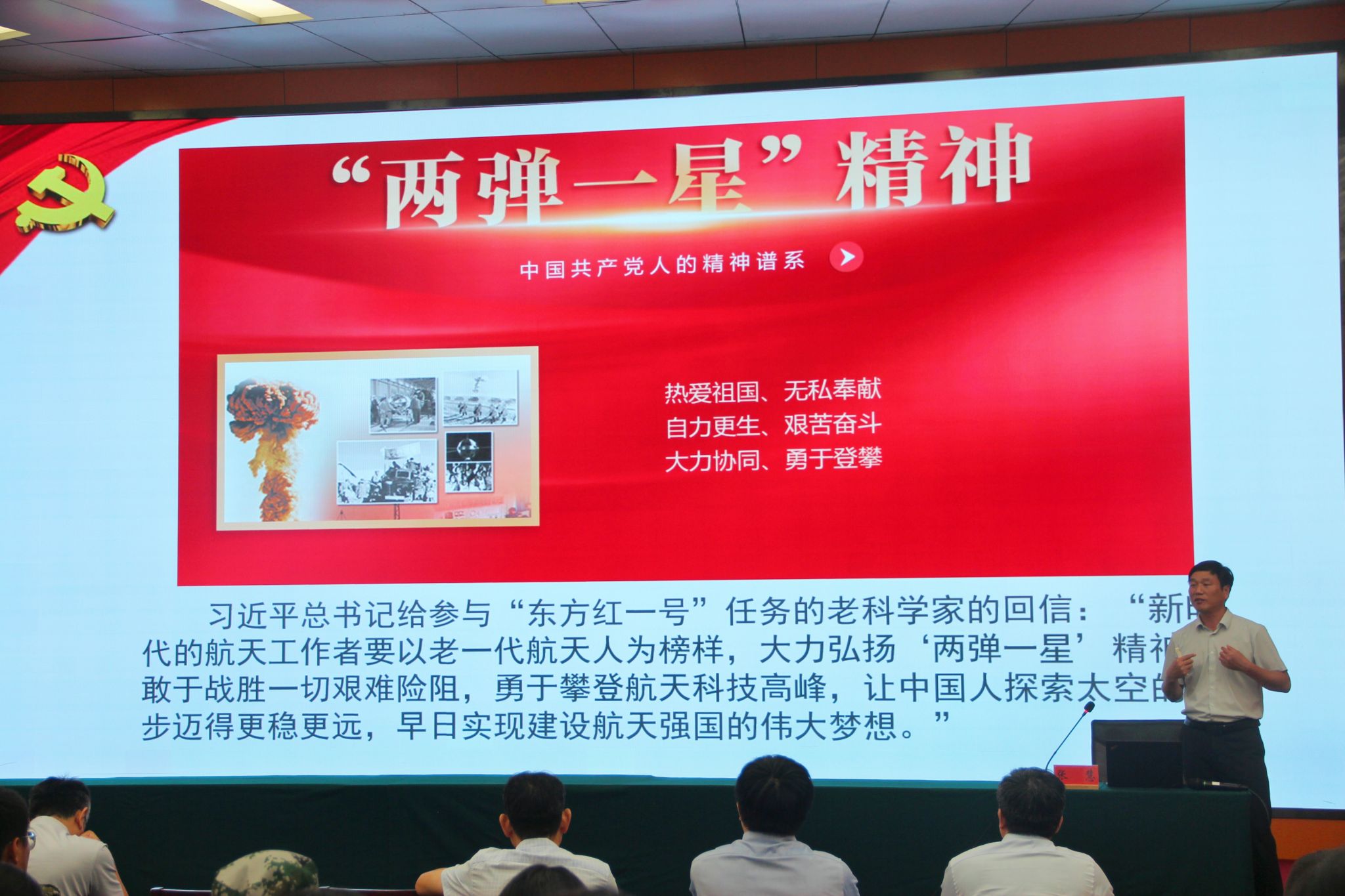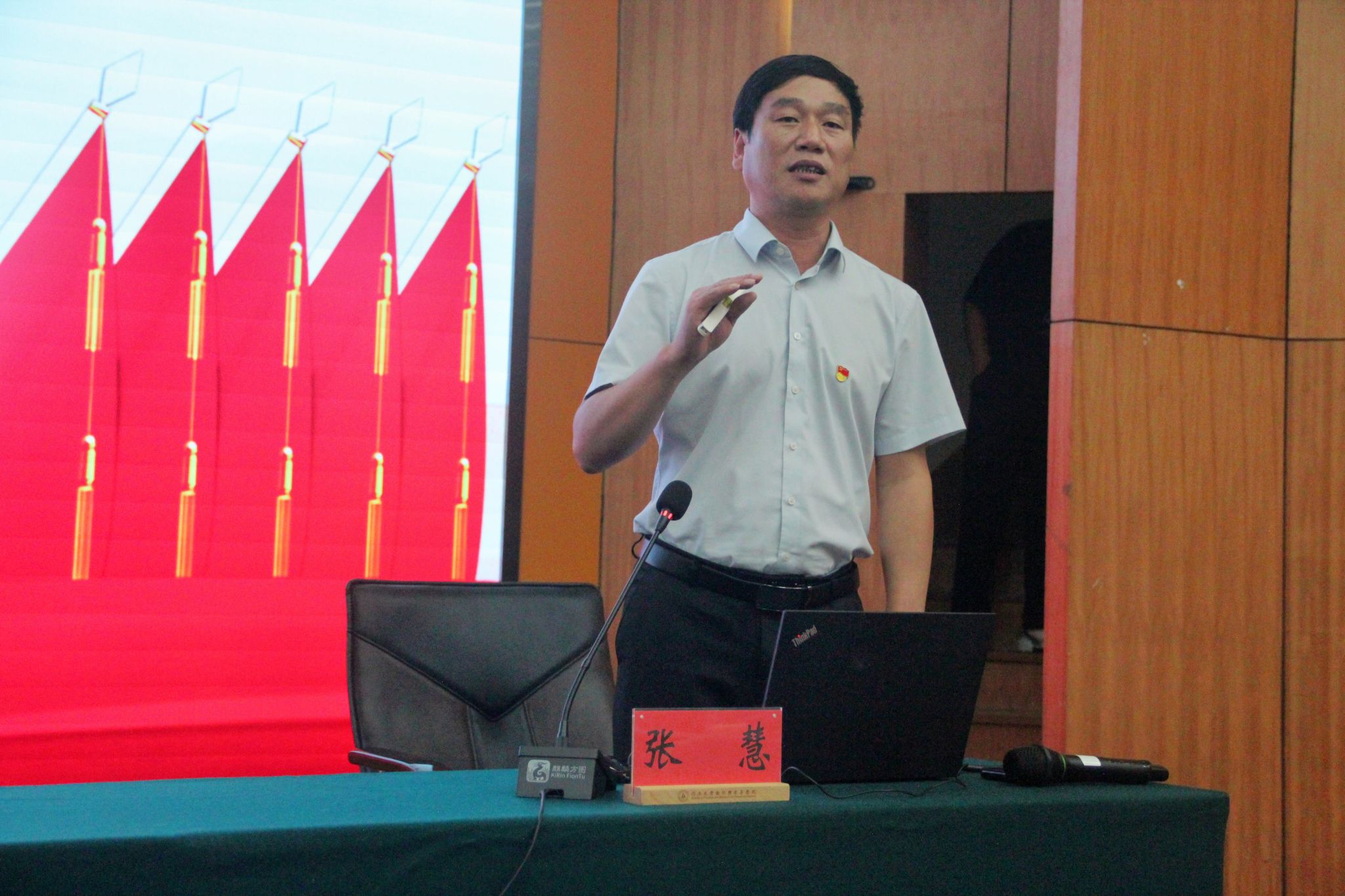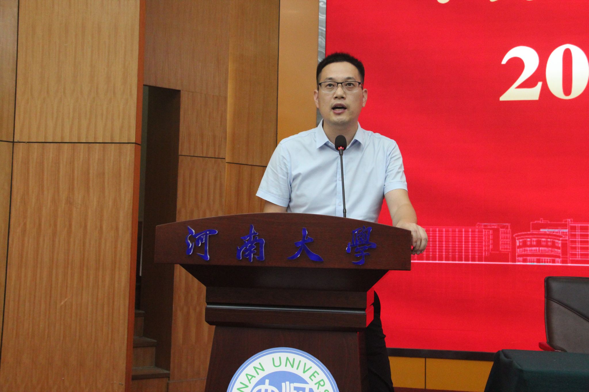 典礼结束后,学院党委书记张慧作《弘扬伟大建党精神,锤炼鲜明政治品格,做有理想敢担当能吃苦肯奋斗的时代新人》专题报告。报告指出,中国共产党一经成立,就把马克思主义写在自己的旗帜上,把实现共产主义确立为最高理想,把为中国人民谋幸福、为中华民族谋复兴确立为自己的初心使命,团结带领全国人民进行艰苦卓绝的伟大斗争,谱写了气吞山河的壮丽史诗。他勉励同学们,要坚定理想信念、让勤奋学习成为青春远航的动力,不负青春韶华、在奋斗实践中练就过硬本领,彰显青春作为、在中国式现代化建设中挺膺担当。他强调,百年河大因创新而生、因改革而兴、因改革创新而强,作为新时代河大人要秉持“自信、拼搏、开放、创新”的新河大精神,用务实踏实的脚步去实现目标,以“愿得此身长报国”的志气,将青春抱负融入到以中国式现代化全面推进强国建设民族复兴伟业中。