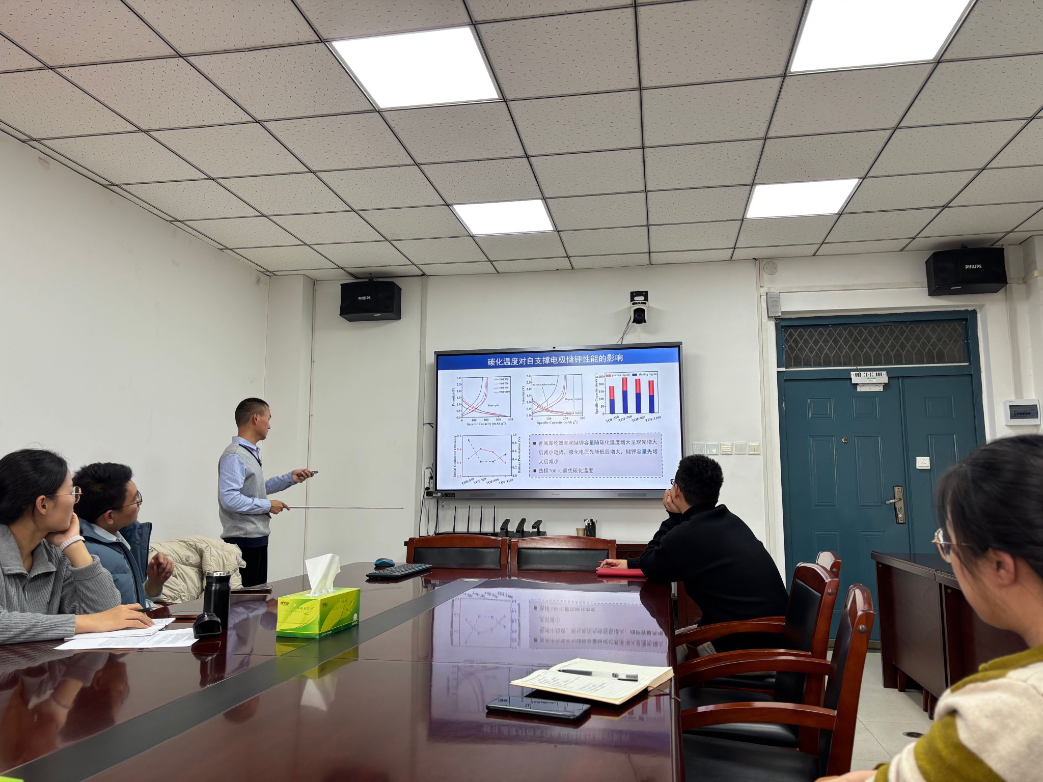 12月5日,李录河博士作了题为“面向生物电子器件供能的高性能金属氧气电池”学术报告,通过材料结构设计、反应路径调控等途径,构建了一系列具有高能量密度且生物安全的柔性金属氧气电池,为解决穿戴式和植入式电子设备的能源供给难题提供了新的思路。张路鹏博士作了题为“高比容量碳负极材料构筑与储钾机制研究”学术报告,围绕K+存储及传输行为对碳负极性能的调控机制与影响规律这一科学问题,从高性能、低成本的角度出发,利用理论计算和实验论证相结合的策略,阐明微观晶格结构、异质原子和电极设计对K+存储/传输行为的影响规律。