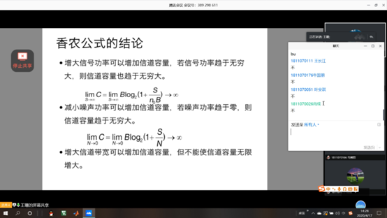 通信原理课上,老师不仅给我们板书、推导公式,还给我们推荐了与这门课贴合的慕课,让我找到了预习的方便之门。与此同时,她也会布置课后作业,巩固课上所学知识。通信原理是一门与数学结合紧密的学科,老师布置的课后作业也大多是计算题。我每次在课后看完回放记好笔记之后,通过做课后作业来巩固学习成果,让我解除了线上学习效率低下的担忧,受益匪浅。