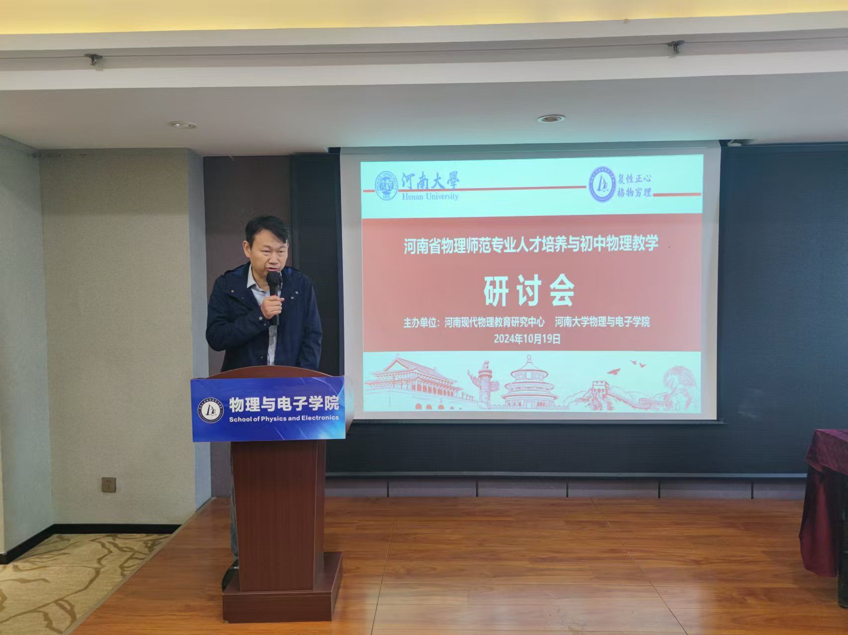 研讨会由副院长李新营主持。李新营对参会人员表示欢迎,强调物理师范专业人才培养是教育基石,初中物理教学关乎学生科学兴趣培养,期望研讨会为河南物理教育注入新动力。