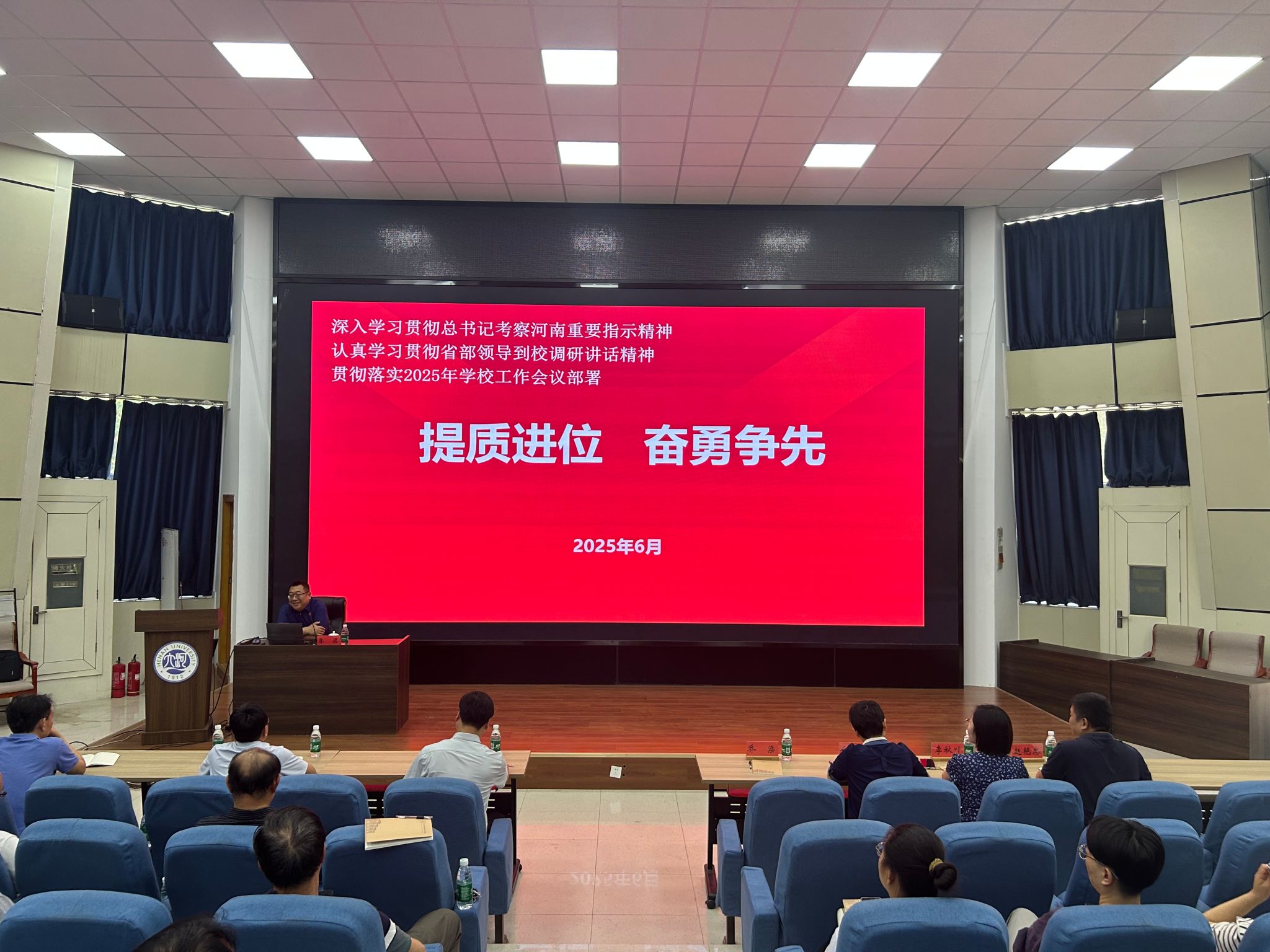 乔梁强调,要深入学习贯彻习近平总书记对河南工作重要指示精神,牢记嘱托,奋勇争先,结合学校、学院和个人发展实际找准着力点和突破口,以钉钉子精神推动各项工作任务落地见效,以创新发展推动学校建设提质进位。要聚焦“两高四着力”、围绕“7+28+N”产业链群,锚定“研究型、综合性、国际化一流大学”办学总目标,坚持“强理振文、新工新医”办学新主线,统筹推进教育科技人才一体化创新发展,推动教育教学模式变革。要贯彻落实2025年学校工作会议精神,紧紧围绕“提质进位”主题,持续营造“踔厉奋发、互相鼓掌、累并快乐着”的办学新文化,凝聚起“一群人干一件大事”的磅礴力量,加速推动“双一流”建设再攀高峰,为百年河大振兴贡献智慧和力量。