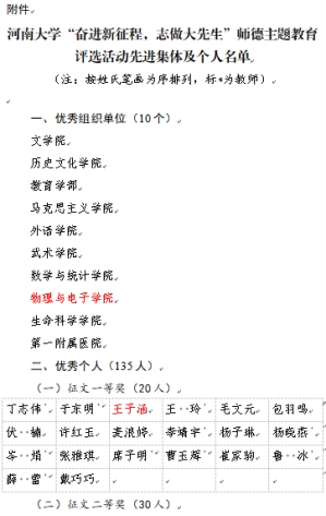 6月26日,学校公布河南大学“奋进新征程,志做大先生”师德主题教育评选活动先进集体及个人名单,我院在此次活动中喜获佳绩。